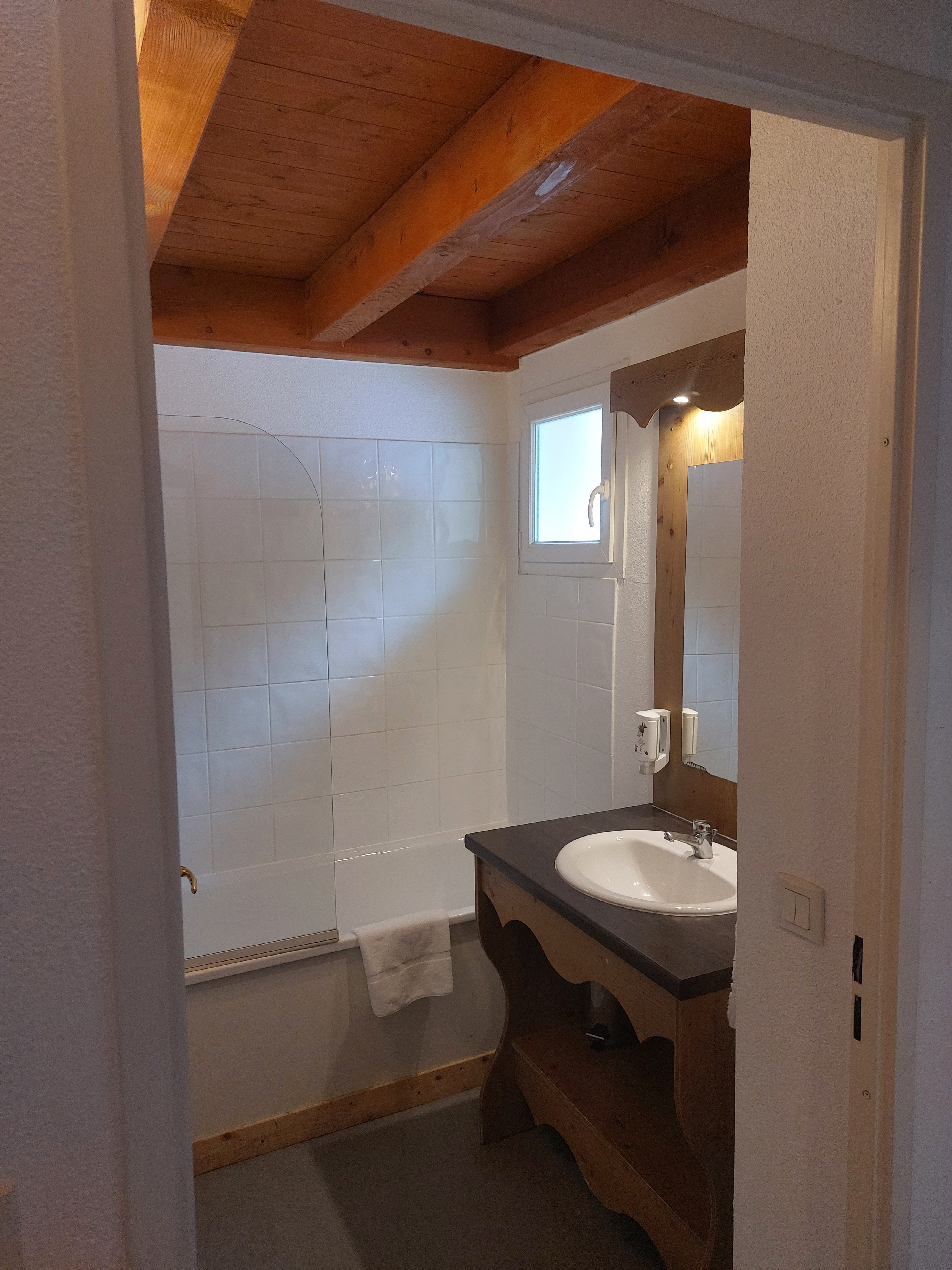 Je ne recommande pas cet établissement Personne à l'accueil à l'arrivée ni au départ ! Tout se gère à distance Les équipements des logements sont minimes et spartiates Un mini écran pc qui fait office de télévision !! En cas de pluie ou brouillard bonjour la déprime Une mini kitchenette non adaptée aux grandes tailles Une décoration vieille de 25 ans Un confort ultra minimaliste Insonorisation quasi nulle Aucun volet roulant ou manuels donc lumière du jour qui passe sur les côtés des doubles rideaux Aucun charme d'un chalet traditionnel Bref beaucoup de choses à revoir Logement inadapté au 21ème siècle !!!!