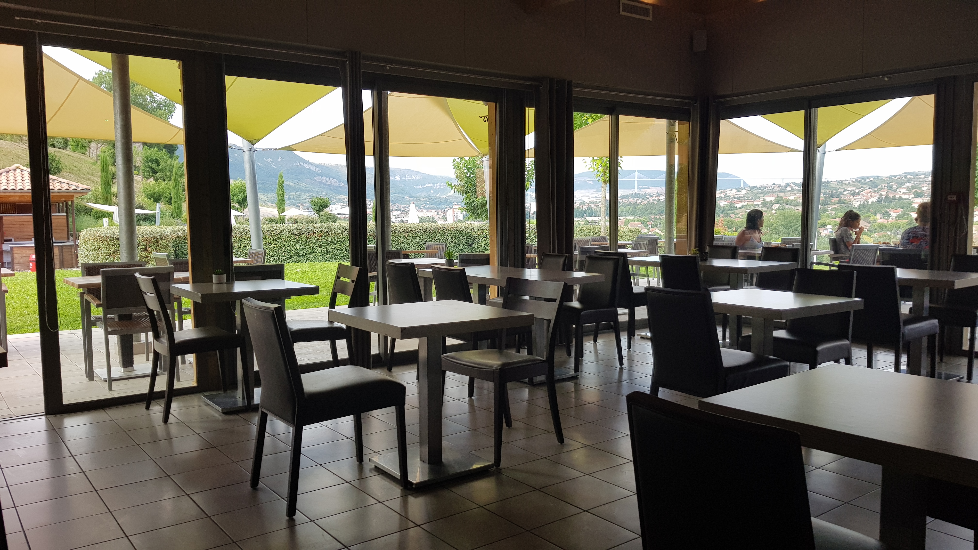 Un cadre panoramique que ce soit depuis la piscine ou la terrasse du restaurant. Une vue magnifique sur le viaduc de Millau. Service accueillant et nourriture convenable et bien du terroir. A decouvrir.