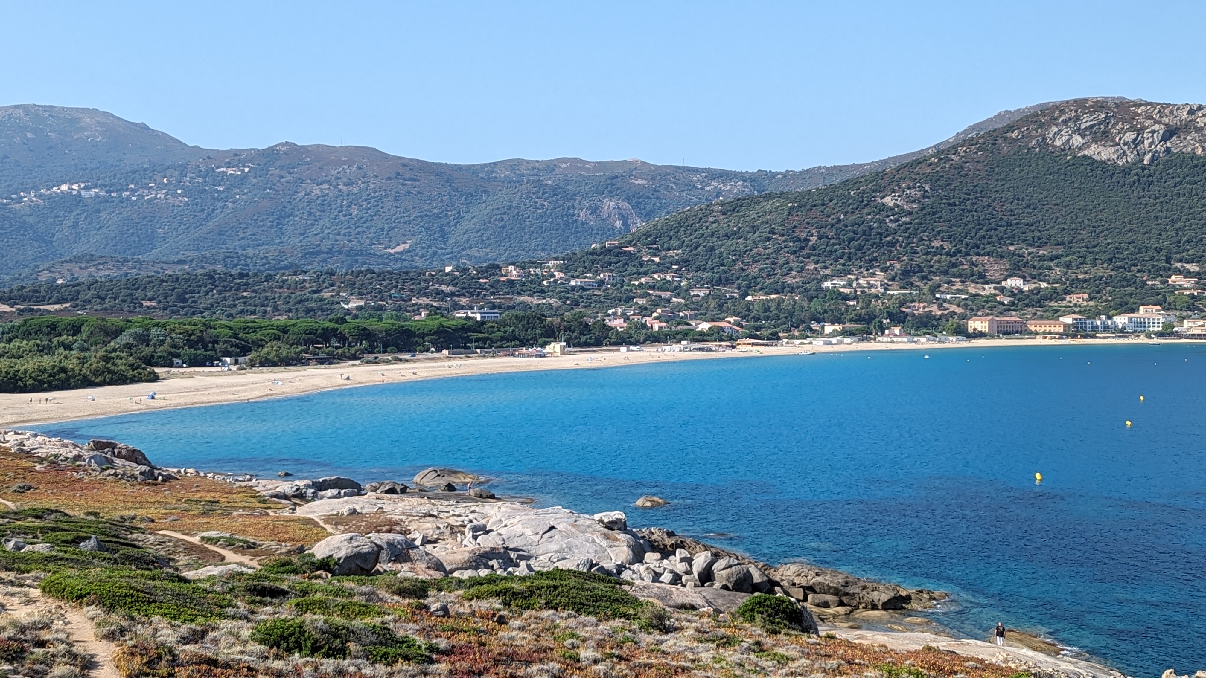 Super grande île. Bon hôtel. La nourriture est moyenne. Mais un excellent bar à salades. L'hôtel est loin des sentiers battus. Le fougueux Elias ne court que de Calvi à L Russo. Si vous souhaitez aller plus loin à l'intérieur, soit prendre un taxi jusqu'à Calvi demain matin puis prendre le train à partir de là, soit louer une voiture. Une excursion en canjoing est fortement recommandée. Simplement génial.