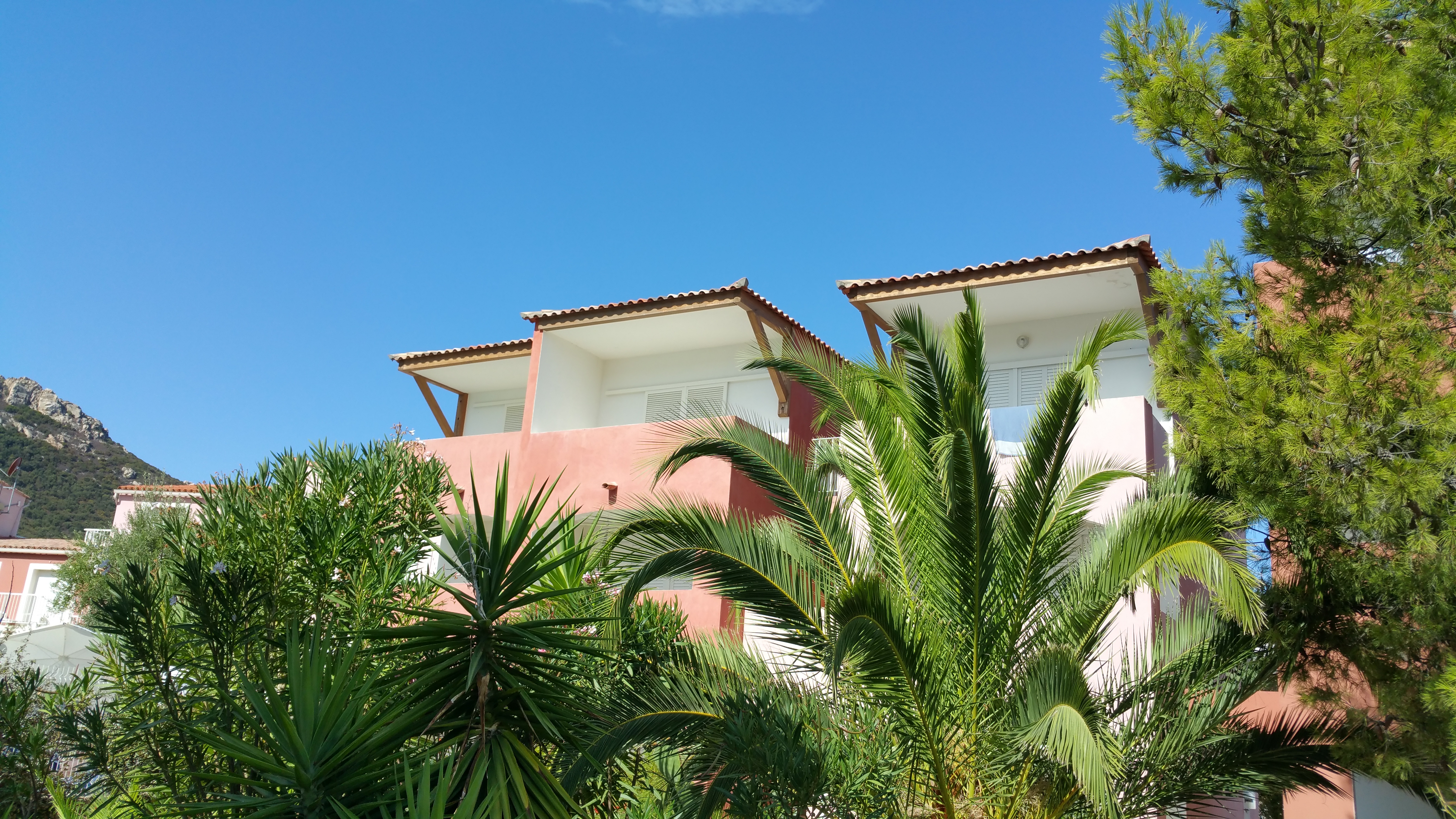 Logement très propre, sorte de bungalow. Il faut savoir parler allemand ou anglais. Je vous rassure à la réception le personnel sait parler français. Très bon accueil, l'équipe est très sympa. L'hôtel (village de vacances) se trouve à peu près à 350 m de la plage. Il manque de l'air conditionné. Un ventilateur dans chaque chambre ne suffit pas pendant la période estivale. La restauration fait un peu cantine scolaire. (Dommage !!). Par contre des restaurants se trouvent à proximité de la plage : U Marosu restaurant vraiment top (je vous le conseil) ! Le petit village est très très mignon il y a de quoi se restaurer. Très belle vue. Bon séjour