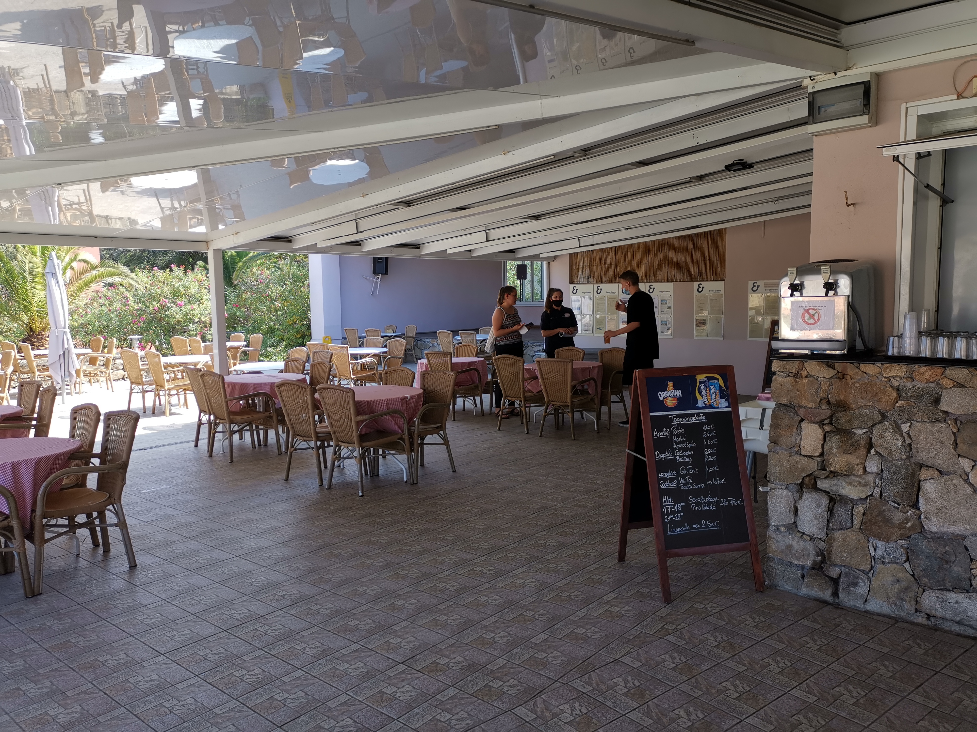 Parfait pour les vacanciers qui ne parlent pas français. Le personnel parle parfaitement allemand et est très serviable. Télévision allemande. Bon appétit.