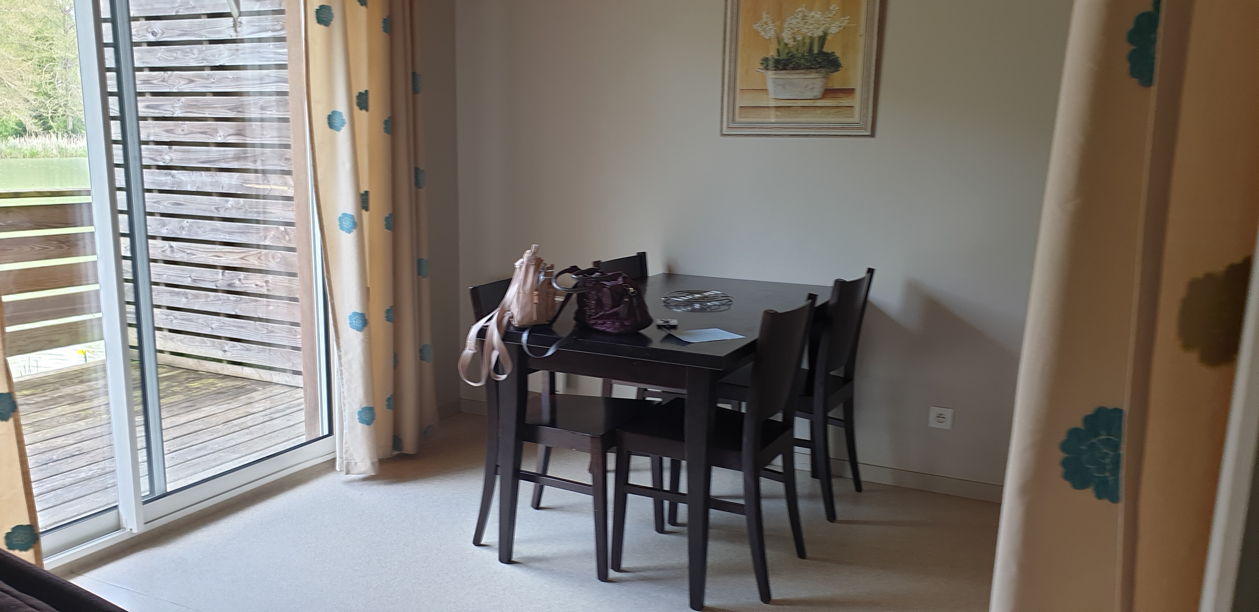 Une heure de file d attente avant de récupérer les clés..Les photos sur le site sont loin de la réalité.chalets extérieurs à repeindre.Loin de tout commerce..mini 20 minutes de route..pour supermarché.équipement pour cuisiner au minimum.Poêles abimées..sans couvercle..ouvre boite des années 50..bouilloire vieillotte..pas de climatisation. Personnel de l entretien extérieur ne sait pas dire bonjour.Télévision sans toutes les chaines TNT. Pas d aspirateur..il faut le demander à la réception..Chemin d accès aux chalets.. pleins de trous.Piscine pas entretenue aux abords. Sinon endroit reposant dans parc.Certaines familles peu discrètes soir à table sur terrasse.